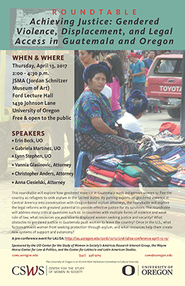 “Achieving Justice: Gendered Violence, Displacement, and Legal Access in Guatemala and Oregon,” roundtable discussion: cosponsored event.