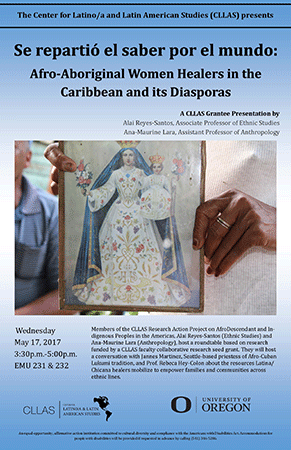 “Afro-Aboriginal Women Healers in the Caribbean and its Diasporas,” CLLAS Faculty Collaboration Grantee Presentation: Alai Reyes-Santos (Ethnic Studies), Ana-Maurine Lara (Anthropology), Jannes Martinez (Priestess of Afro-Cuban Lukumi tradition), and Rebeca Hey-Colón’ (Colby College).