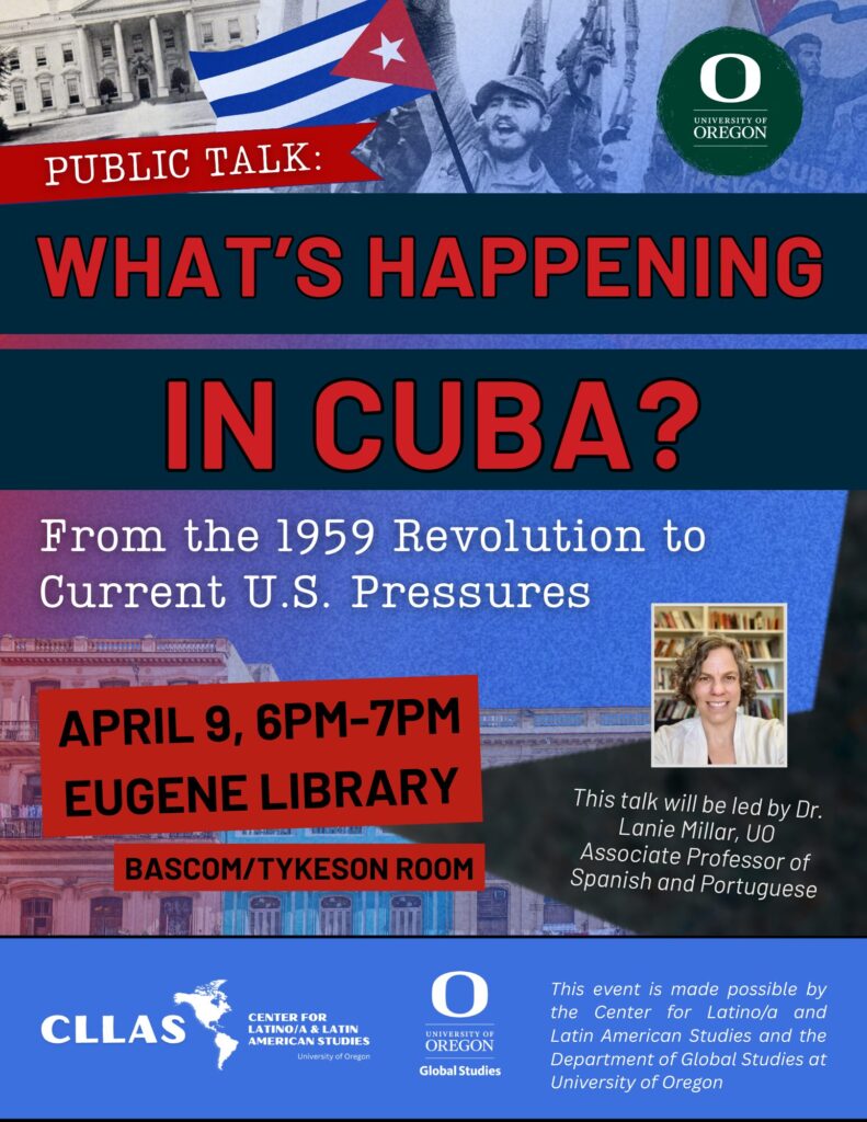April 9 – Research Talk – What’s Happening in Cuba? 1959 Revolution to Current U.S. Pressures