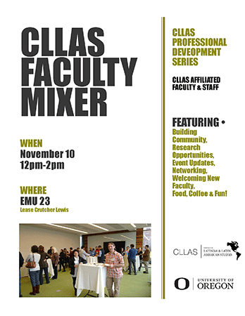 Come connect with other faculty members across campus whose interests lie in the areas of Latino/a and Latin American Studies. This is a chance to learn about each other’s interests and interdisciplinary work, and a good opportunity to connect with like-minded colleagues, all while enjoying delicious food from UO Catering.