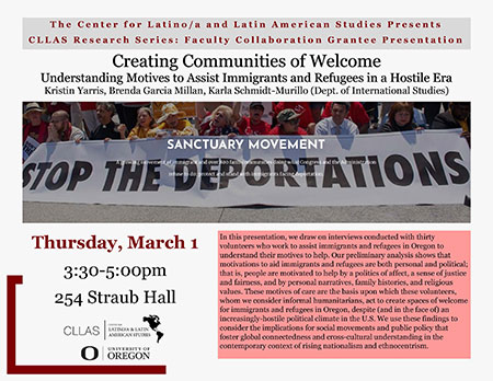In this presentation, we draw on interviews conducted with thirty volunteers who work to assist immigrants and refugees in Oregon to understand their motives to help. Our preliminary analysis shows that motivations to aid immigrants and refugees are both personal and political; that is, people are motivated to help by a politics of affect, a sense of justice and fairness, and by personal narratives, family histories, and religious values. These motives of care are the basis upon which these volunteers, whom we consider informal humanitarians, act to create spaces of welcome for immigrants and refugees in Oregon, despite (and in the face of) an increasingly-hostile political climate in the U.S. We use these findings to consider the implications for social movements and public policy that foster global connectedness and cross-cultural understanding in the contemporary context of rising nationalism and ethnocentrism.