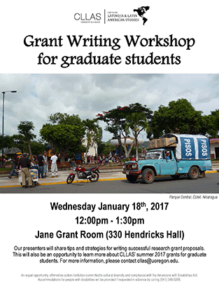 The Center for Latino/a and Latin American Studies will hold its annual Grant Writing Workshop targeted toward graduate students on January 18, 2017.