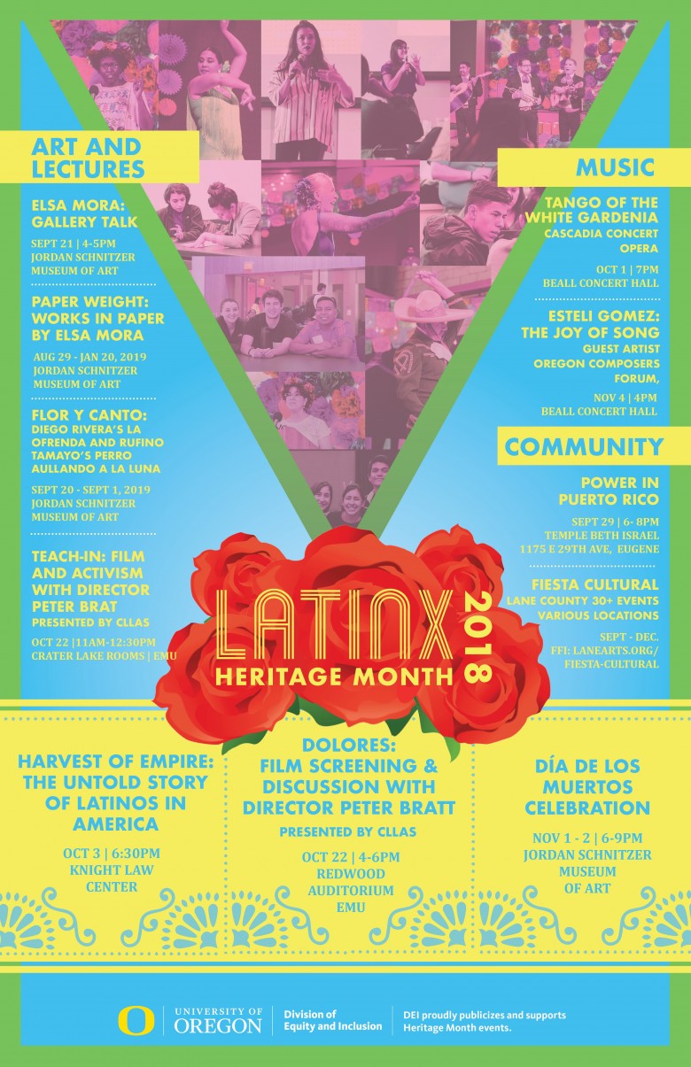 With events spanning late September to early November, LatinX Heritage Month at the UO and across the United States examines and affirms the culture, history, traditions and current issues of diverse Americans whose origins or ancestors are from Mexico, Spain, the Caribbean, or Central and South America.