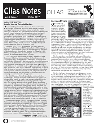 But what we do have in this issue is a warm letter from interim director Gabriela Martínez that includes a wrap-up of our fall events and a look at coming events, updates on our Research Action Projects, research articles from our CLLAS Graduate Research Award winners, book news and news & updates from our campus community, brief profiles of faculty and staff members who are new to campus, and other exciting bits and pieces about the ongoing work of CLLAS and its community and faculty affiliates.