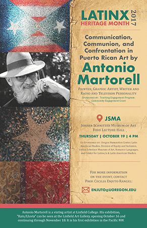 Conversation (Q/A) with Puerto Rican artist Antonio Martorell at Crater Lake North, Erb Memorial Union (EMU), Room 146, 1222 E. 13th, UO campus.