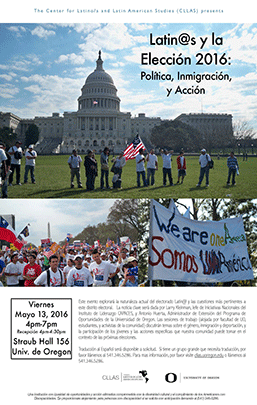 This election season event allowed UO faculty and students to meet with people from a half dozen different community organizations to talk, strategize, build relationships, and plan an agenda together. Meeting on campus at Straub Hall, “Latin@s and the 2016 Election: Policies, Immigration, and Action” drew an audience focused on exploring the current nature of the Latin@ electorate and the issues most relevant to this constituency.