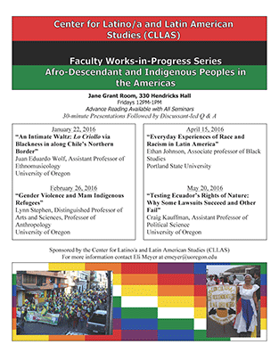 Sponsored by the Center for Latino/a and Latin American Studies (CLLAS). For more information contact Eli Meyer at emeyer(at)uoregon.edu